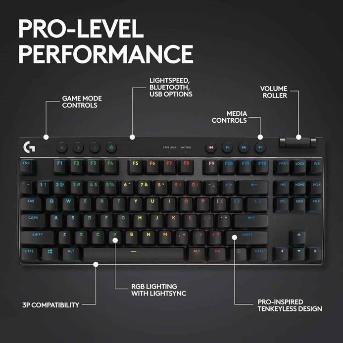 - PRO X TKL ofrece el rendimiento y la fiabilidad confiables del campeonato de LIGHTSPEED Wireless con un factor de forma TENKEYLESS diseñado para el más alto nivel de juego competitivo
