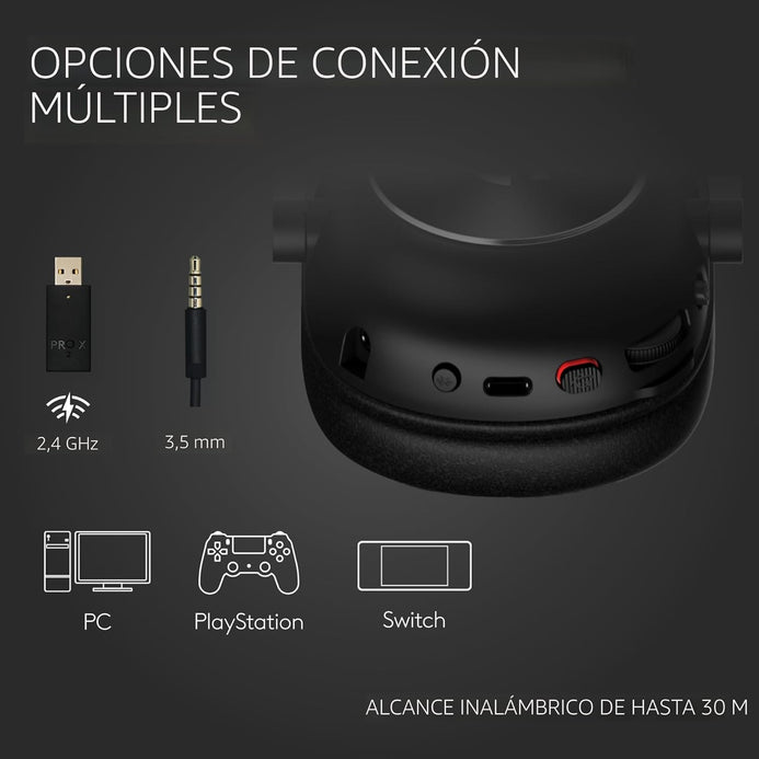 - Conectividad: Inalámbrica LIGHTSPEED (2.4 GHz). Bluetooth. Cable 3.5 mm (incluido). Cable USB-A a USB-C (para carga)