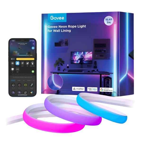 Transforma cualquier espacio con la tira de luz neón Govee H6641 de 5 metros. Ideal para iluminación ambiental en paredes, techos o muebles, esta luz LED flexible ofrece colores RGB vibrantes y personalizables para crear el ambiente perfecto. Controla fácilmente el brillo, los colores y los modos de iluminación desde tu smartphone mediante la app Govee, compatible con Alexa y Google Home para control por voz. Su diseño resistente y flexible permite una instalación sencilla en cualquier superficie, perfecta para decorar habitaciones, oficinas o espacios recreativos. Dale vida a tus ambientes con esta luz de alta calidad y larga duración.