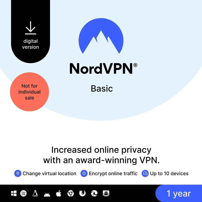 NordVPN Basic, Servicio VPN premium - 10 dispositivos /1 año - Descargar