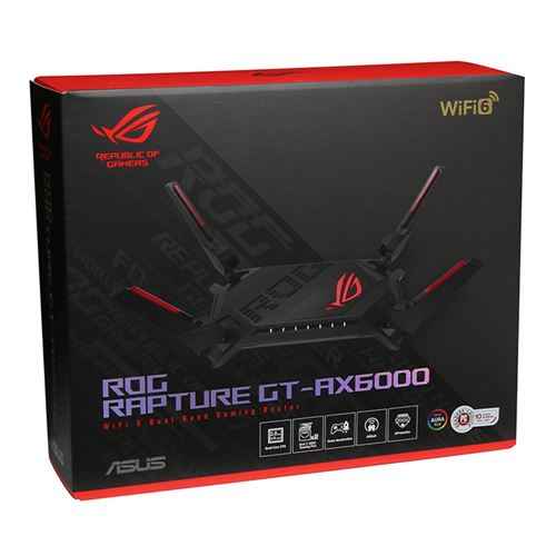 Enrutador para juegos ASUS ROG GT-AX6000 WiFi de doble banda 6 (802.11ax), puertos duales 2.5G, hardware mejorado, agregación WAN, VPN Fusion, aceleración de juegos de triple nivel, seguridad de red gratuita y soporte AiMesh.