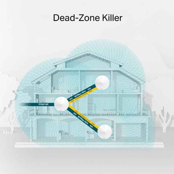 - Cobertura en toda la casa sin cortes. La tecnología Wi-Fi Mesh de Deco permite llevar la señal de internet fuerte y estable a todos los rincones de la casa hasta 510m2.